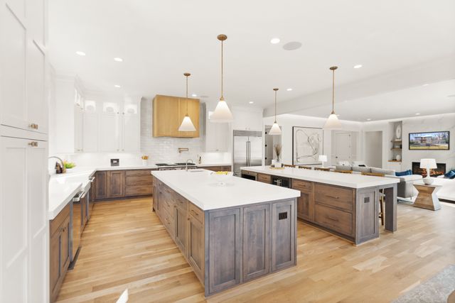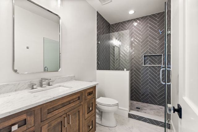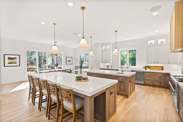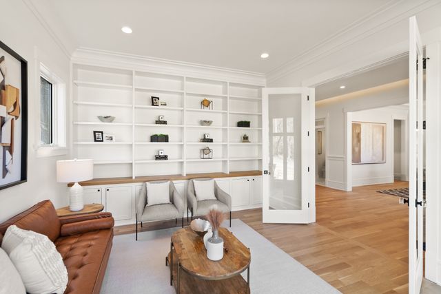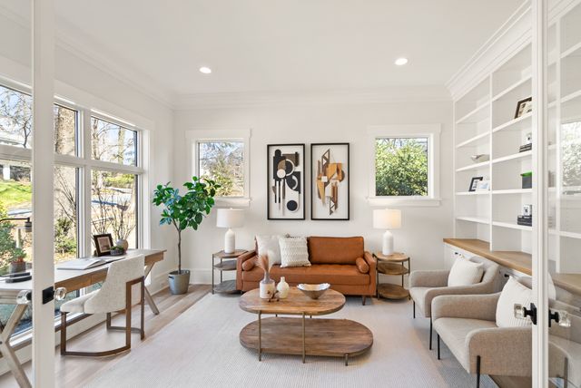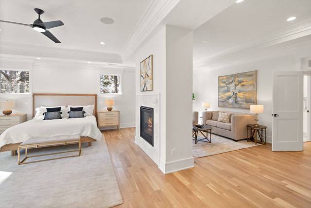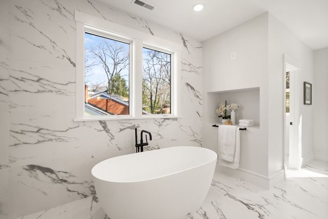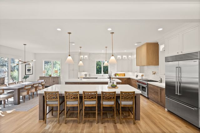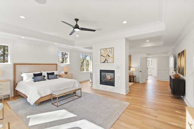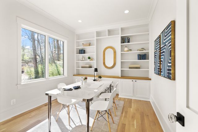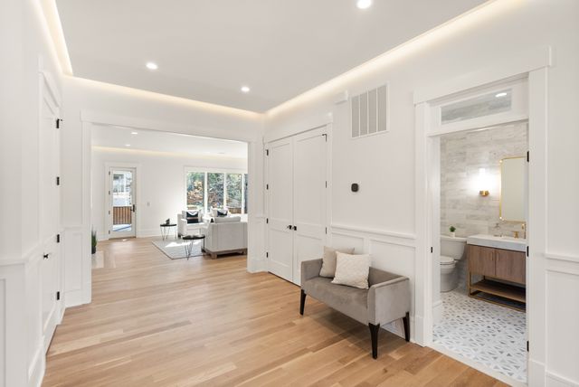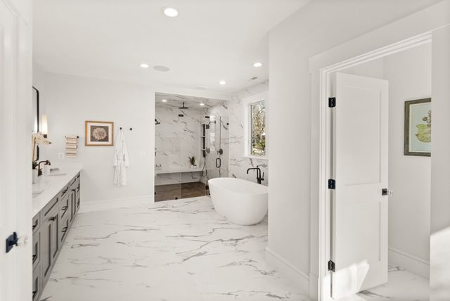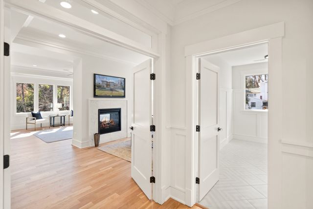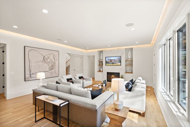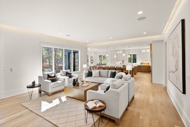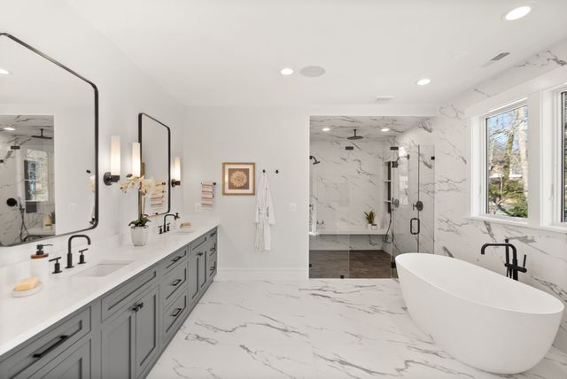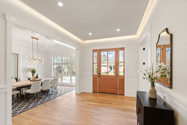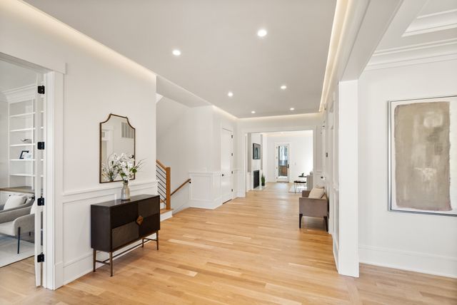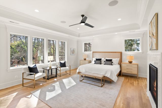 Exceptional Transitional new construction home in the bucolic rolling hills of sought-after Chesterbrook Woods. Nestled amongst mature hardwoods and professional landscaping on a level 17,614 sq.ft. lot is this stunning new home featuring 6 bedrooms, 6 full bathroom, and 1 half bathroom across three levels in nearly 8,500 finished sq.ft. From the moment you enter, you'll be captivated by the fine finishes and attention to detail throughout. Cove lighting greets you in the broad foyer flanked by the formal living room/office to the left with its wall of custom built-ins and and the formal dining room to the right with its and butler’s pantry. Both rooms are awash with natural light from the floor to ceiling windows. The open floor plan flows effortlessly into the family room, the masterpiece chef’s kitchen, and sun-drenched breakfast room. The showcase kitchen includes double oversized islands, custom inset cabinetry, Wolf and SubZero appliances, 2.5” quartz countertops and a large walk-in pantry with custom built-ins. A main floor bedroom is an ideal in-law suite with a full en-suite bathroom including a curbless-entry shower. A separate, private office off with custom built-ins greets you off the mudroom with its beautiful wall of built-in cabinets, benches, and cubbies. A powder room with designer marble tile completes the main level. The large second floor foyer with cove lighting leads you to the luxurious primary suite with its private sitting room, double sided fireplace, huge his-and-hers walk-in closets, and spa-like bathroom. The tranquil retreat of the primary bath boasts a free-standing soaking tub, extra-long double vanity, large frameless glass shower with curbless-entry and multiple shower heads, and heated floor. Three secondary bedrooms with full en-suite bathrooms and a laundry room complete the upper level. The lower level features an expansive recreation room with wet bar and wine room, exercise room with rubber flooring, bedroom with full en-suite bathroom, and a powder room. PERFECT FOR ENTERTAINING with its large rooms and open floor plan, screened porch with heaters and fans, and large open deck leading to the landscaped back yard. Ceiling mounted speakers in family room, kitchen, dining room, primary bedroom, primary bathroom, basement recreation room, and screened porch. Abundant storage throughout. ELEVATOR shaft rough-in for ease of future installation. 3 car garage wired for EV charger. Conveniently located near GW Parkway, Rt 123 (Dolley Madison Blvd), parks, amazing shops and restaurants! CHESTERBROOK ES, LONGFELLOW MS, MCLEAN HS